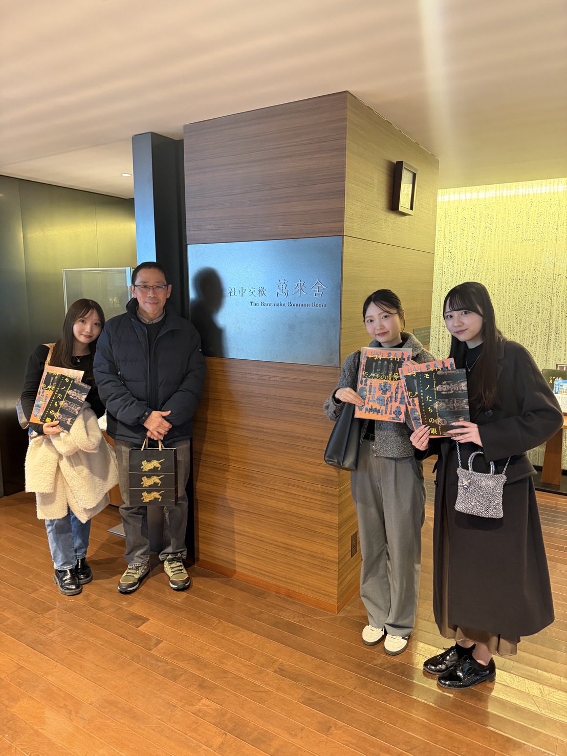 - 2025年度4年生の河野さん、米村さん、石倉さんのお三方が卒業前に遊びに来てくれました(2026.3.13)。南校舎4Fの「社中交歡 萬來舍」でお茶しました。